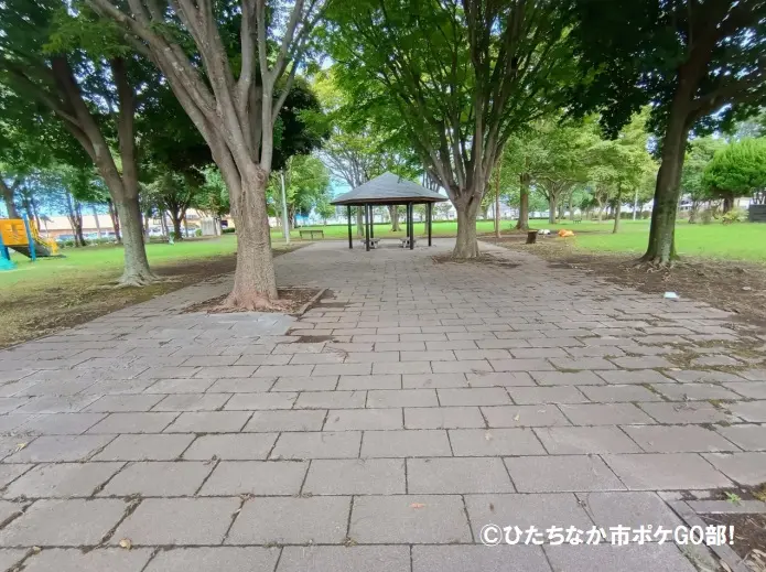 屋根付きベンチ(1か所)や、木陰ポイントがあります。